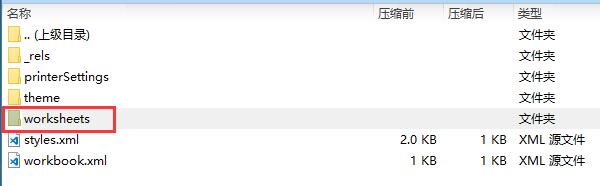 4、在新的excel上,右键-用压缩包打开,进入xl目录,再进入worksheets目录