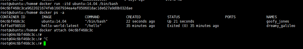 docker run -itd ubuntu:14.04 /bin/bash