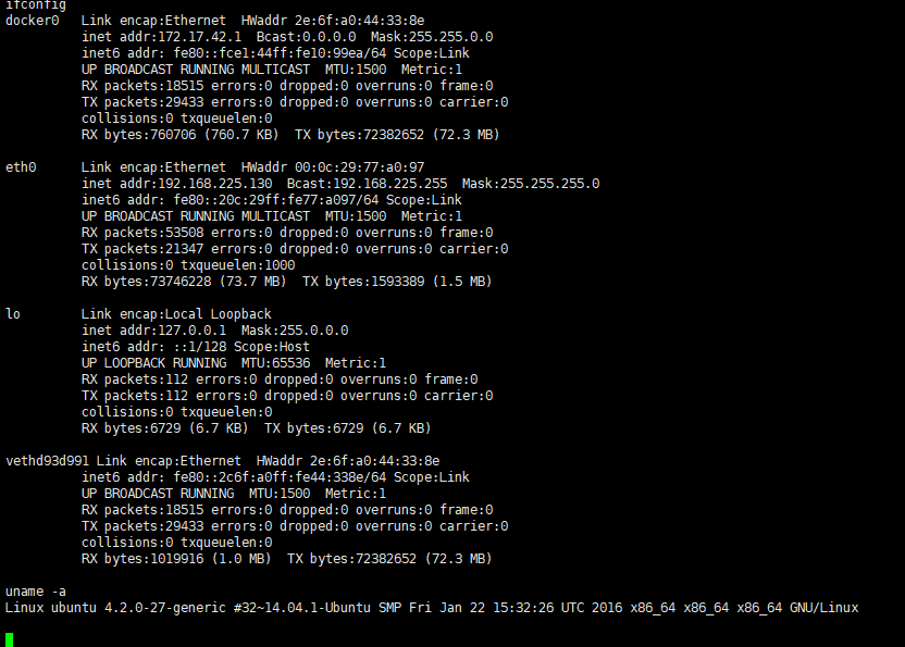 对比IP地址,上图为宿主,下图为docker容器